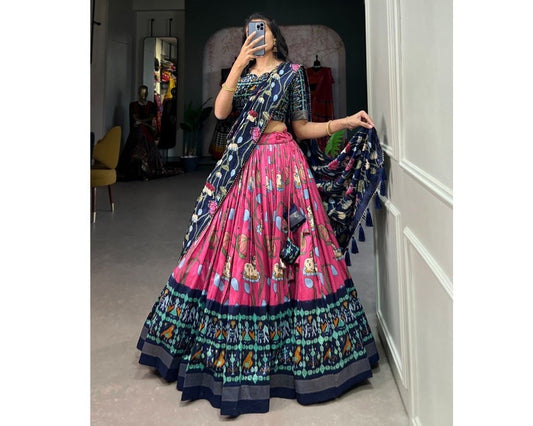 Lehenga Details: Fabric: Heavy Muslin Cotton with Digital Print, Foux Georgette Size: Free Size, Up...