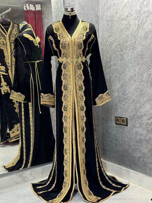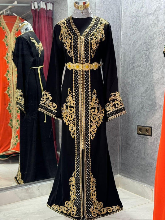 Moroccan Caftan, Luxury Embroidered Dress 2 Pieces With Belt , Fancy Kaftan Abaya