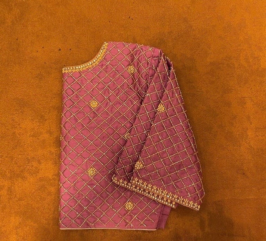Here is a beautiful Hand embroidered heavy zardosi work saree blouse in pink color that...