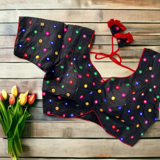New Multy Mirror Work Blouse Multy Foil Mirror Heavy Embroidery Work Blouse FABRIC:--Heavy Fantom Silk. SIZE:- 38" Ready...