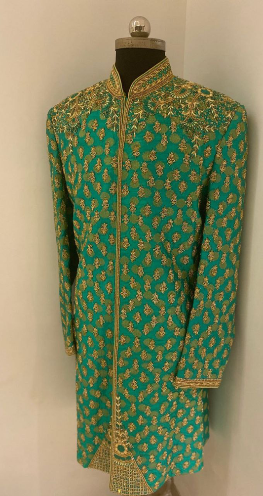 Elevate your style with our Teal Blue Prince Coat, a masterpiece crafted from pure embroidered...