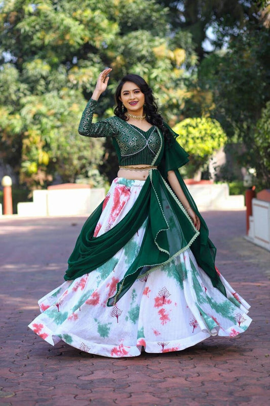 Lehenga (Stitched) Lehenga Fabric: Muslin Cotton Lehenga Work: Digital Print & Mirror Work Lehenga Size: Up to 44...