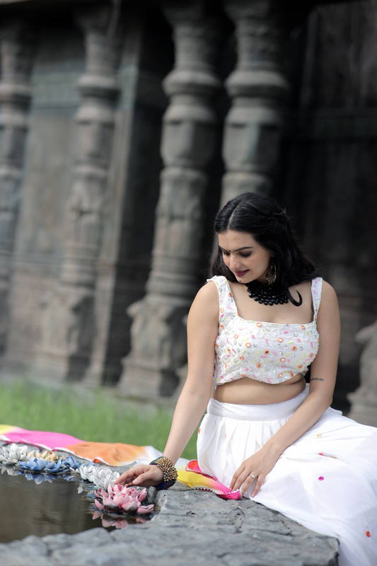 Fabric Details Lehenga(Semi-Stitched) Lehenga Fabric : Butter Silk Lehenga Work : Print & Mirror Work Lehenga Waist...