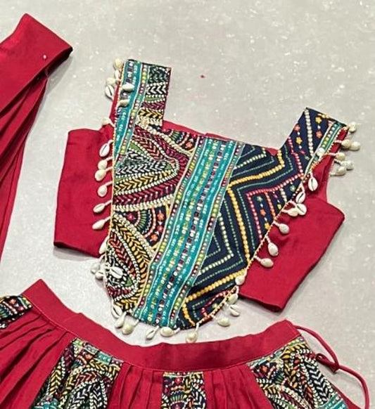 Product Details Blue and red embroidered lehenga choli with dupatta, mirror workBlue and red embroidered...