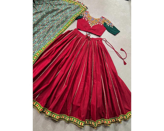 Product Details This stitched lehenga, made from pure cotton, showcases intricate Gamthi work with paper...