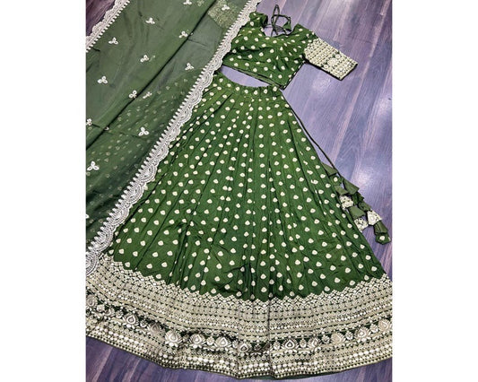Green georgette embroidered wedding lehenga choli - Choli Fabric: Georgette Size: Unstitch Up to 44...