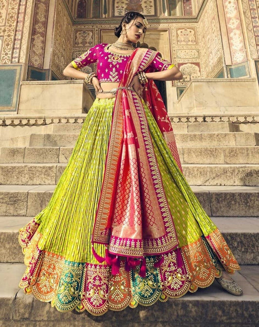 Fabric DetailsLehenga - Heavy SilkBlouse- Heavy SilkDupatta - Net With Heavy Lace..Work - Heavy Embroidery.Type...
