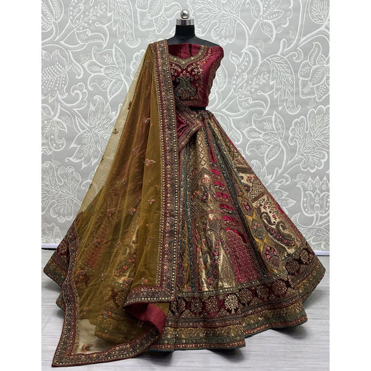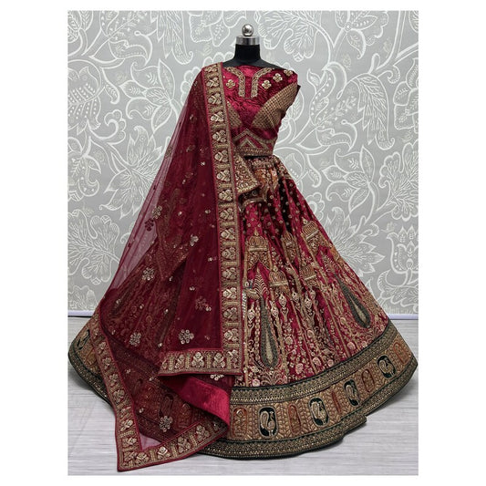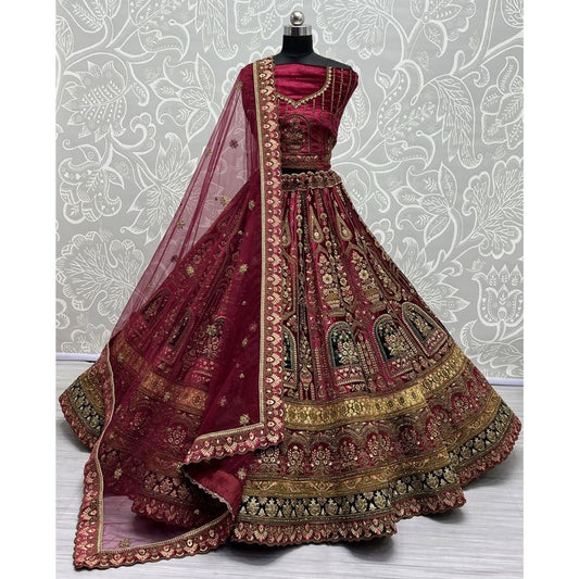 Name : Buy Gorgeous Maroon Color Pure Velvet Lehenga With Multi Thread Work, Sequence work, Dori Work,...