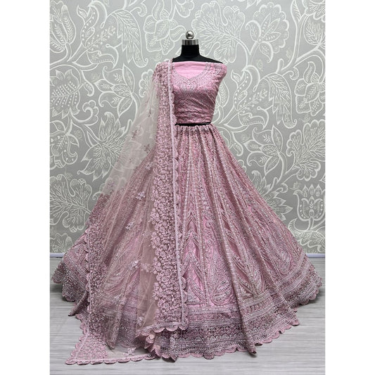 To complement your graceful demeanour, andaaz fashion presents this pastel pink net lehenga which will...