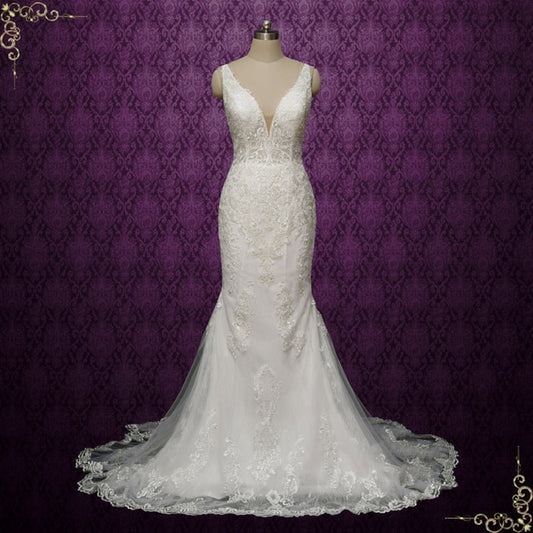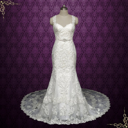This exquisite mermaid wedding dress is fabricated with luxurious European lace and a fitted silhouette to create...