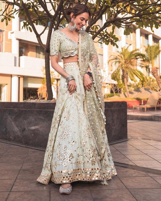 Fabric : Mulberry silk lehnga with paper mirror work And zari work all over (...