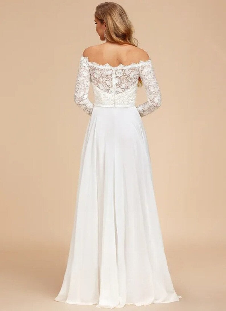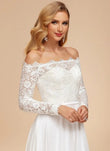 A-line Off Shoulder Floor Length Chiffon Lace Wedding Dress