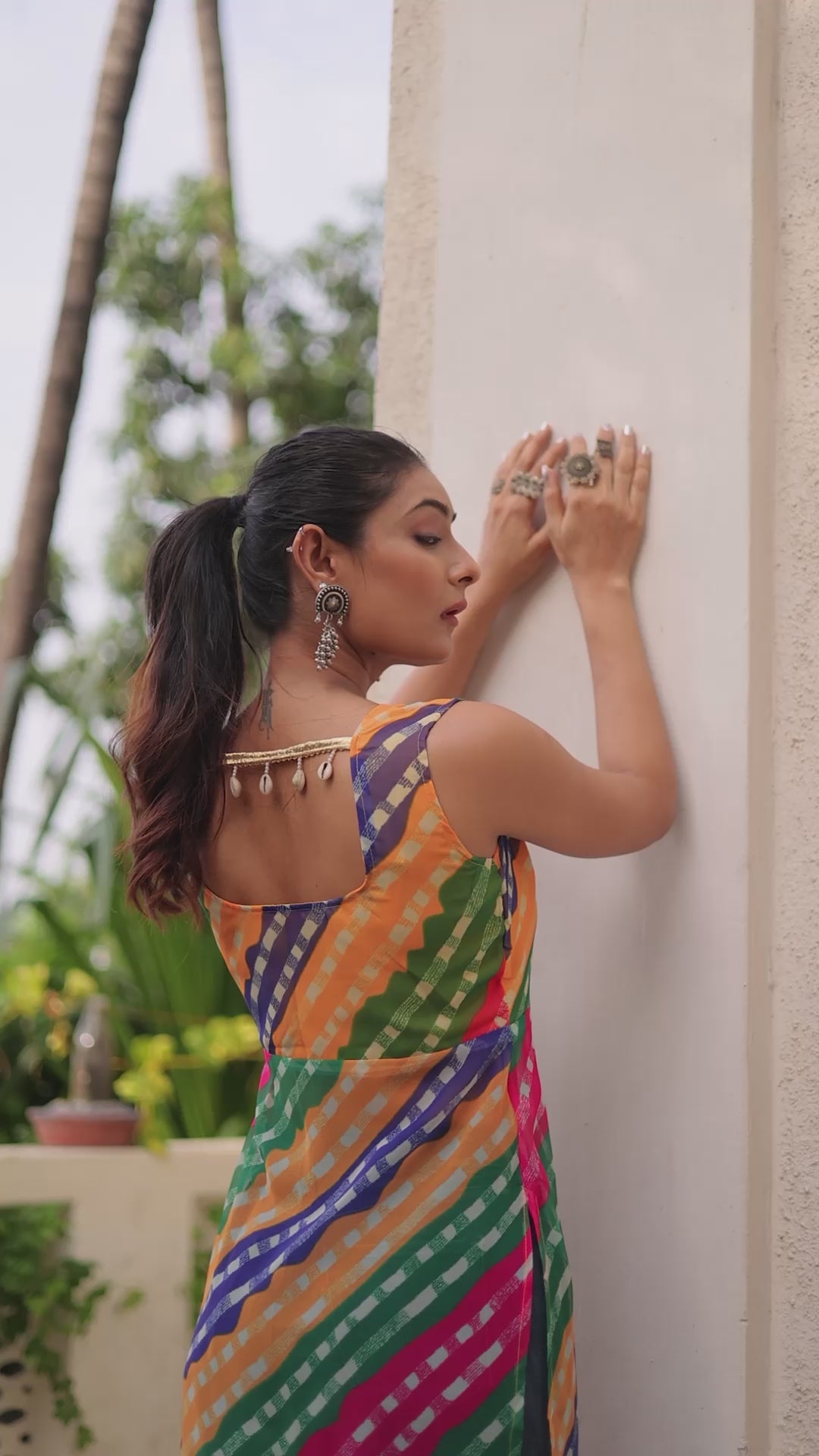 👉🏻 Fabrics & Work :- Bandhej Printed Georgette With Kutchi Gamthi Mirror & Codi lace work