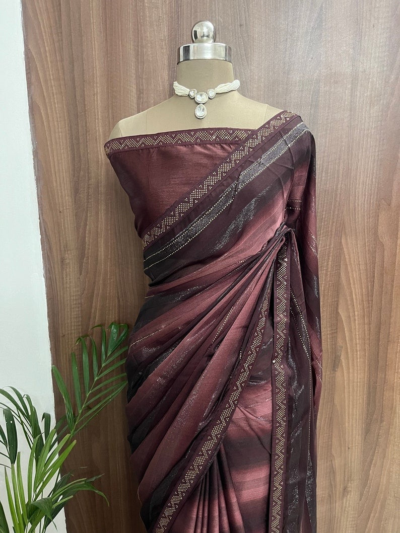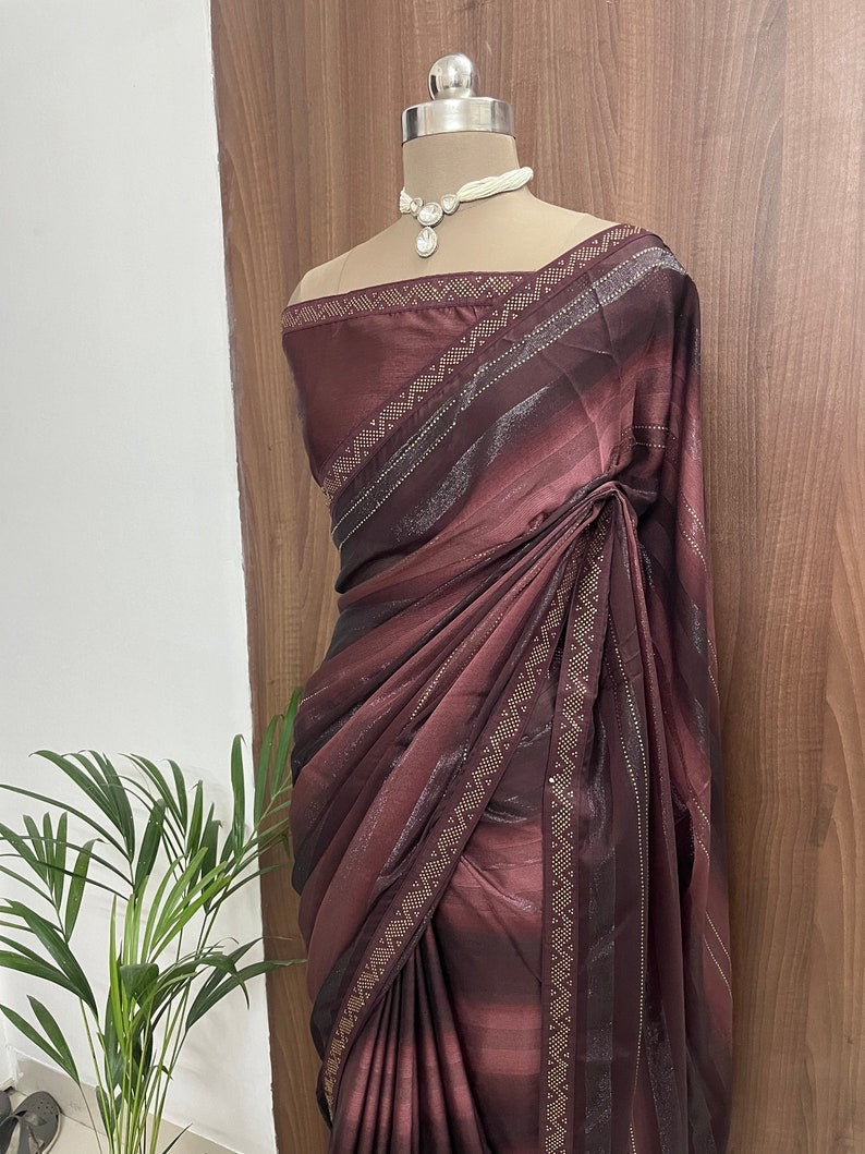 Beautiful Brown Satin Georgette Saree with Art Silk