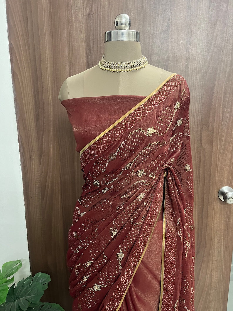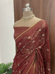 Beautiful Brown Shimmer Georgette Saree with Sequins work