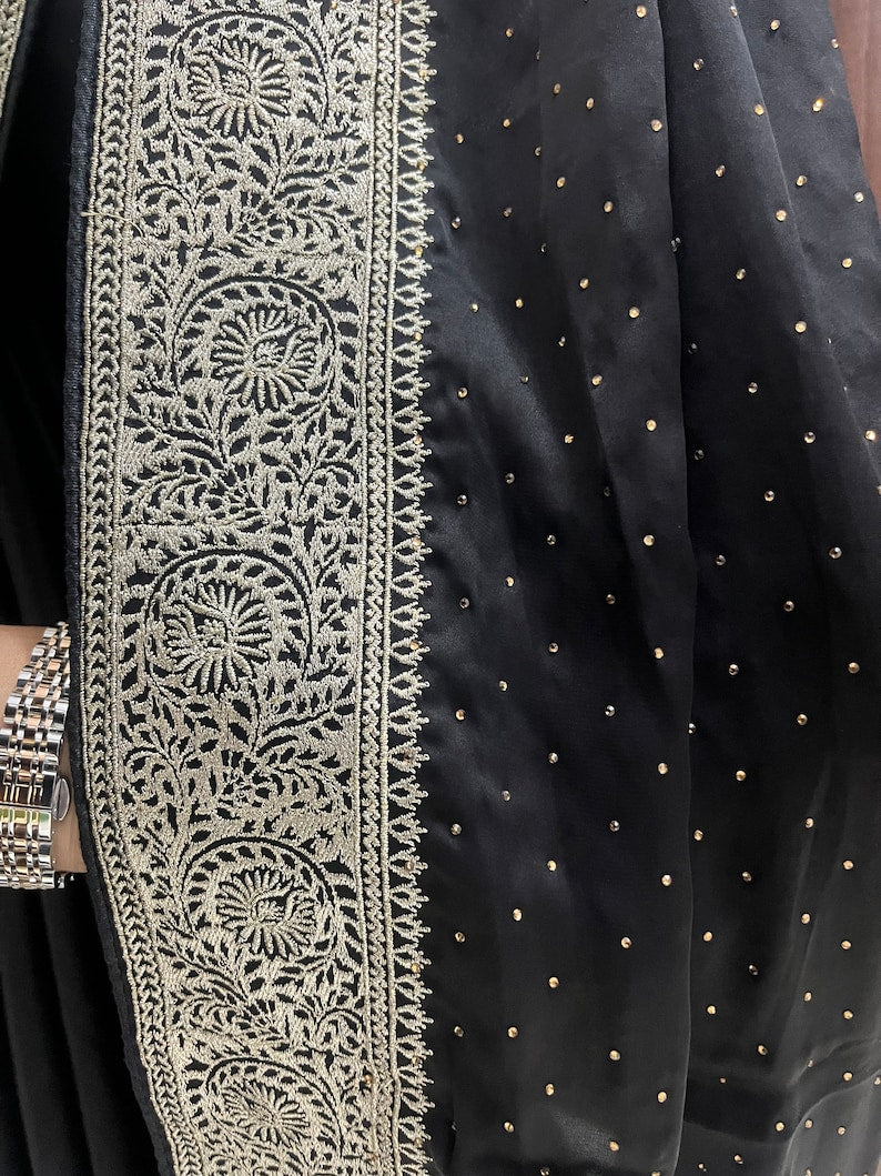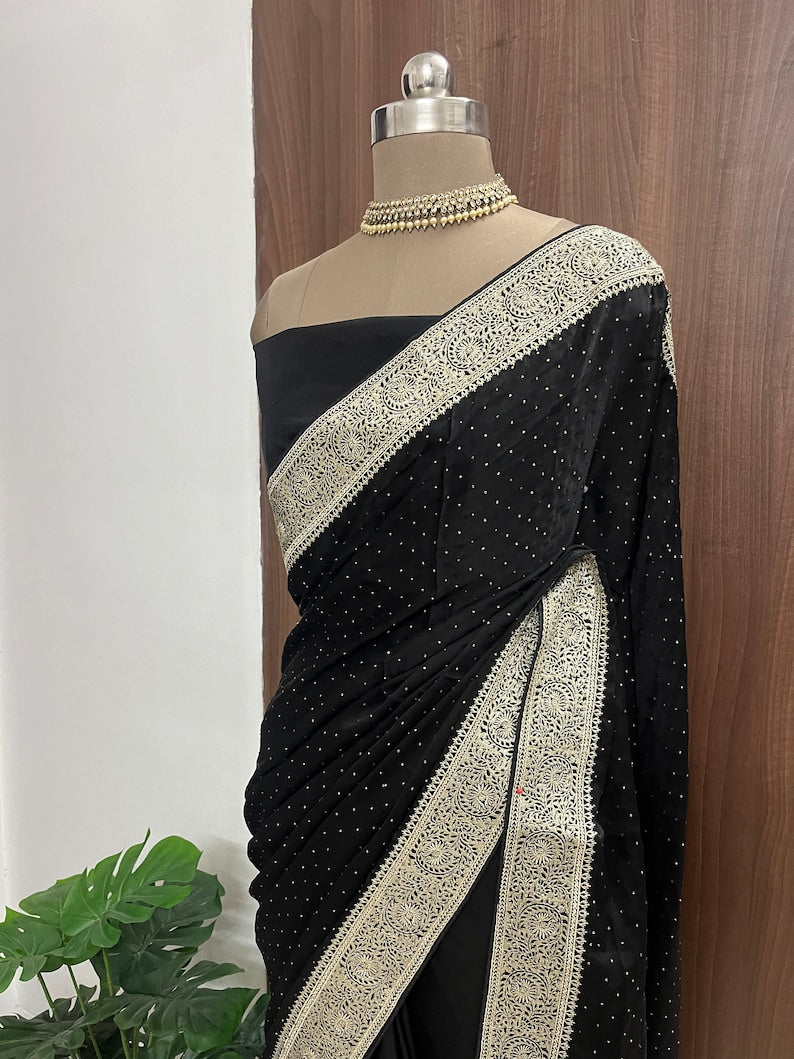 Beautiful Deep Purple Satin Saree with Zari Border
