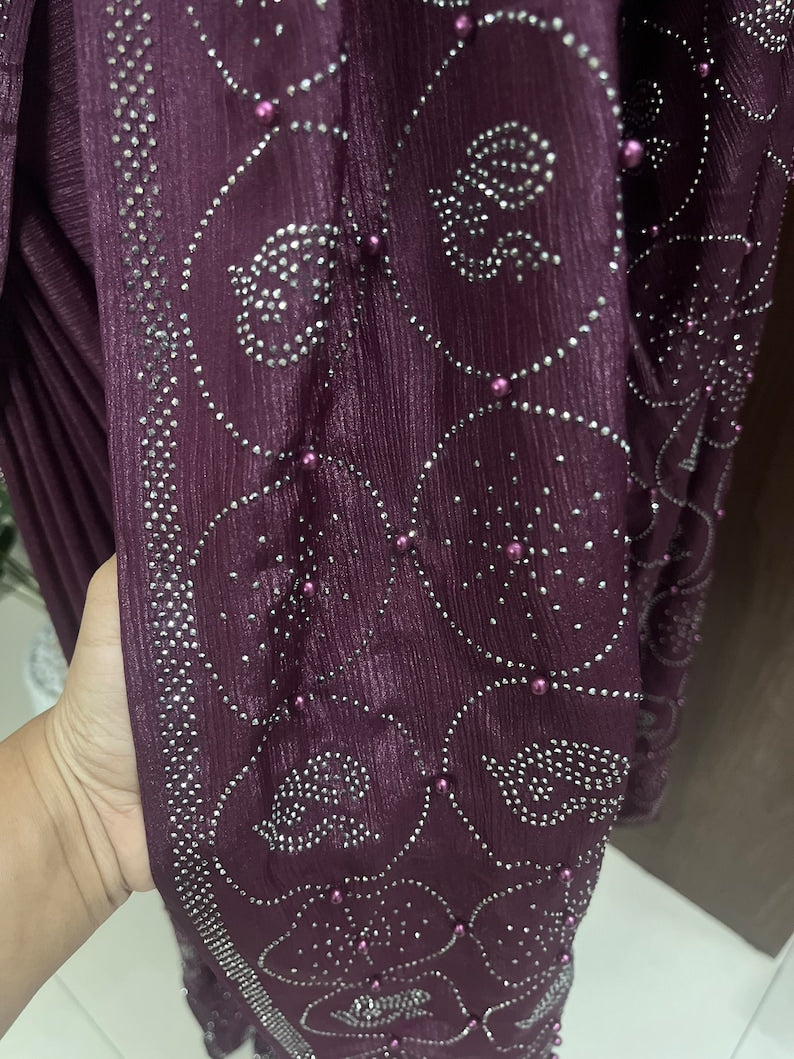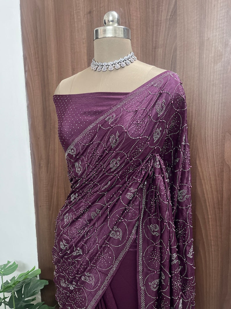 Beautiful Deep Wine Crepe Chinon Party Wear Saree
