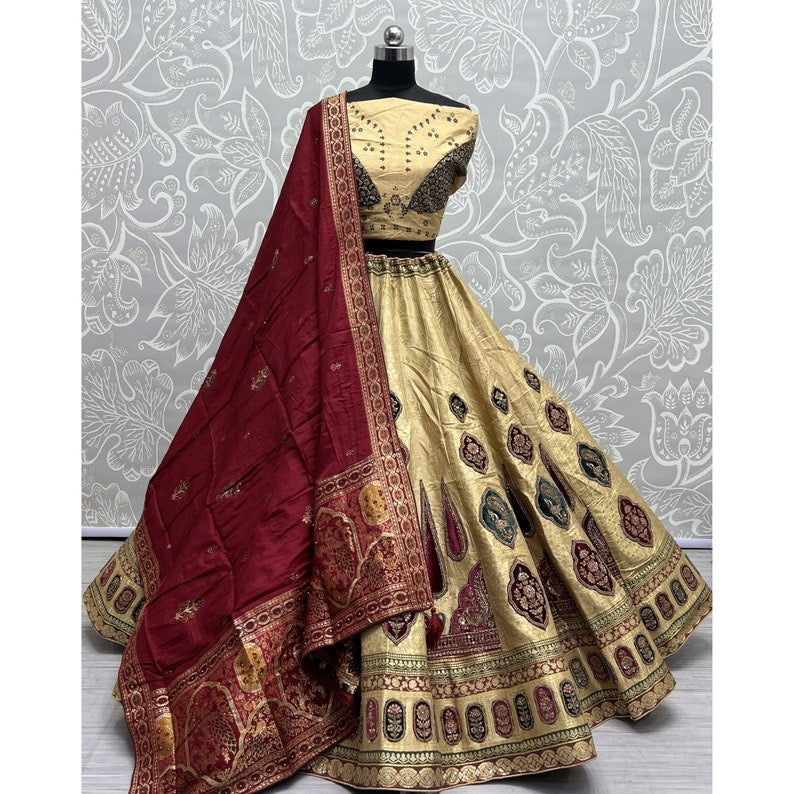 Semi Stitched (Lehenga Waist Size : 42 in, Lehenga Length Size: 46 in, Duppatta Length Size: 2.5 in)