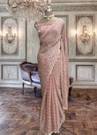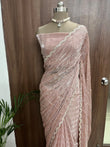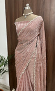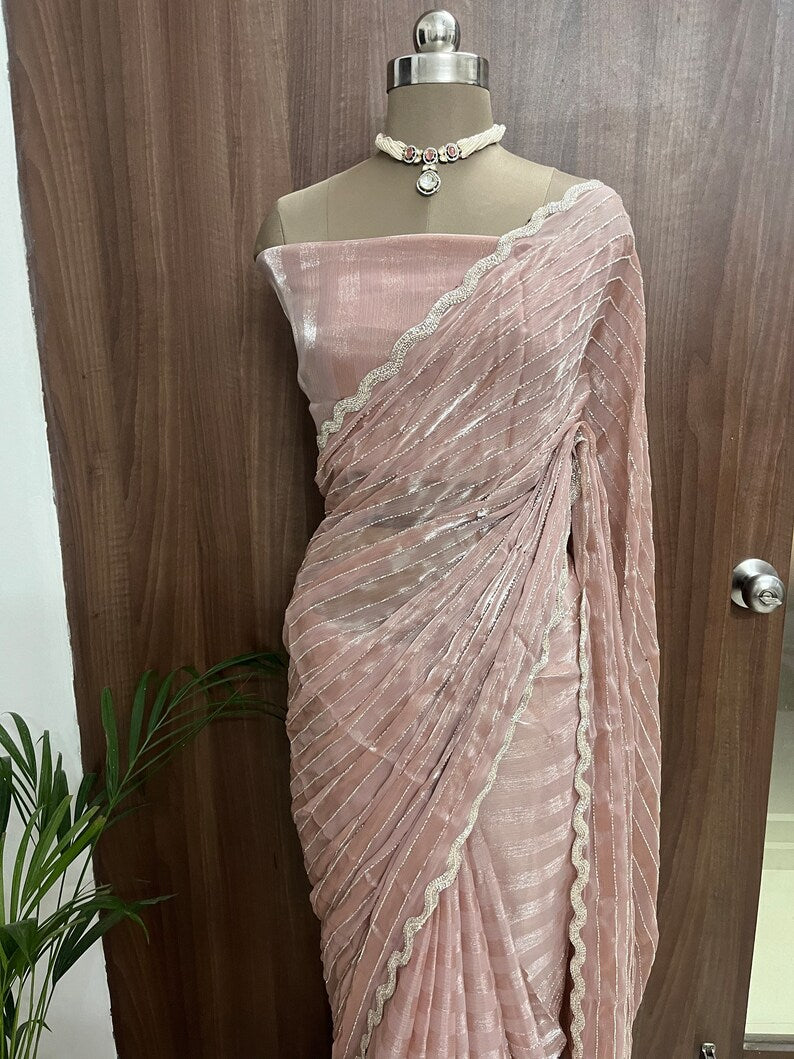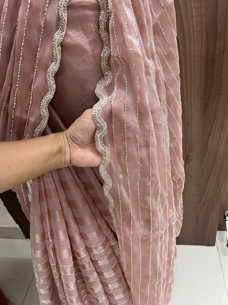 Beautiful Nude Peach Organza Saree with Pipe Embroidery