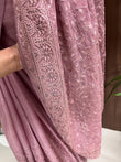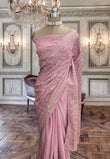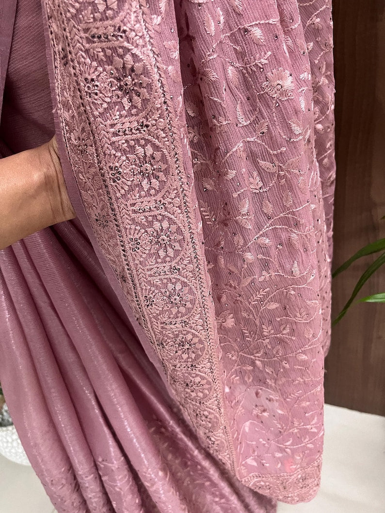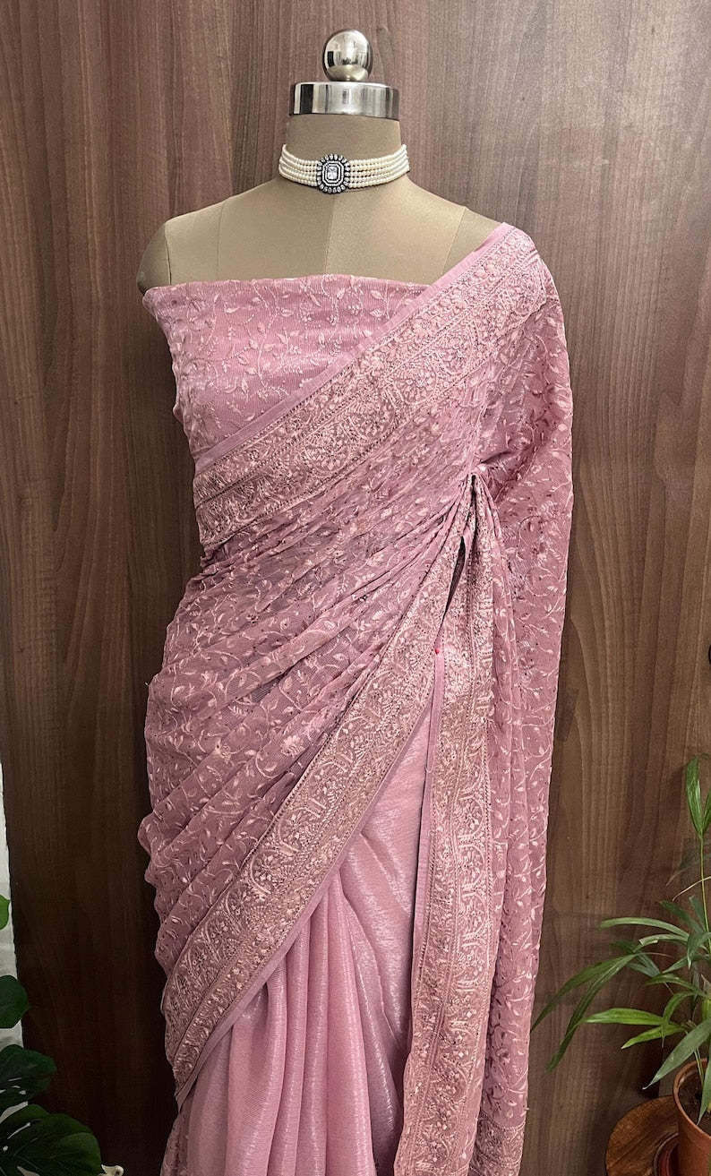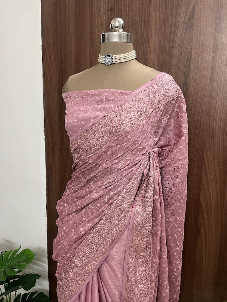 Beautiful onion pink Jimmy choo organza saree with thread work and running blouse piece