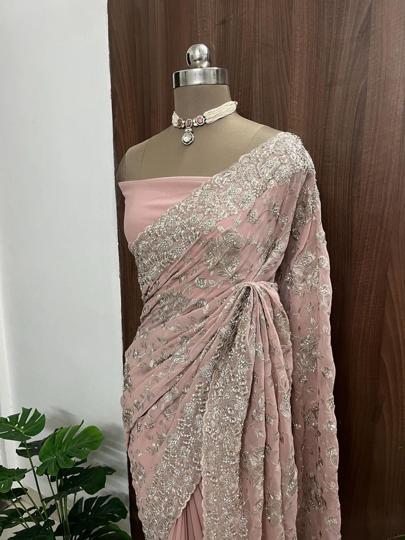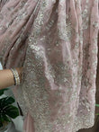 Beautiful Peach Pink Net Saree