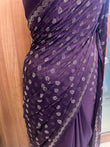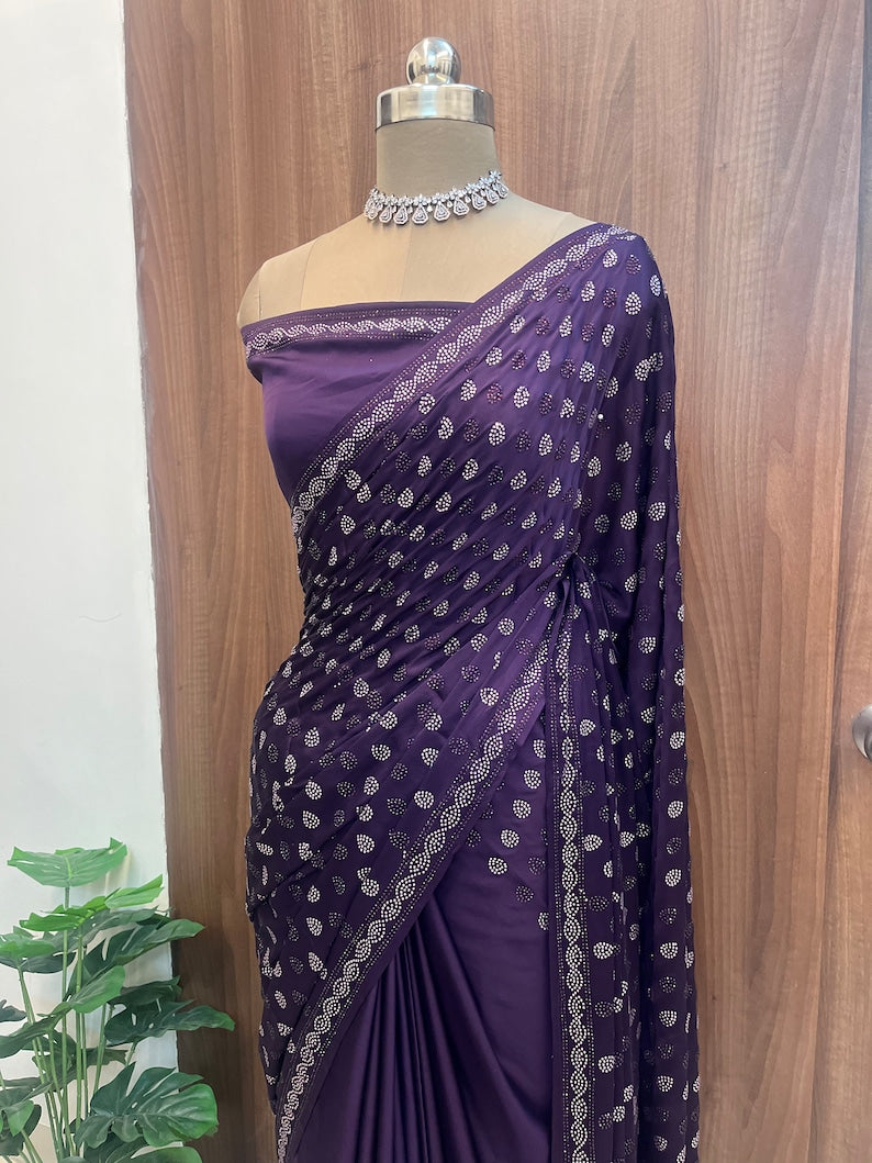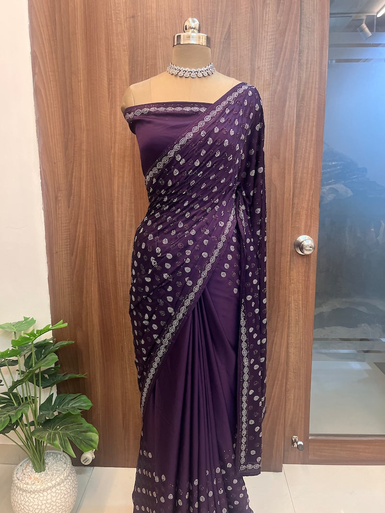 Beautiful Pure Purple Satin Saree with Kundan Work