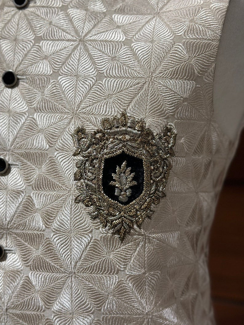 Here at Elaf Prestige, we take pride in our work. Perfectly tailored, this waistcoat offers an unmatched fit and style, making it ideal for grooms on their wedding or nikah day. However, its versatility goes beyond; the groom's brothers and friends can also look great in this high-end item.