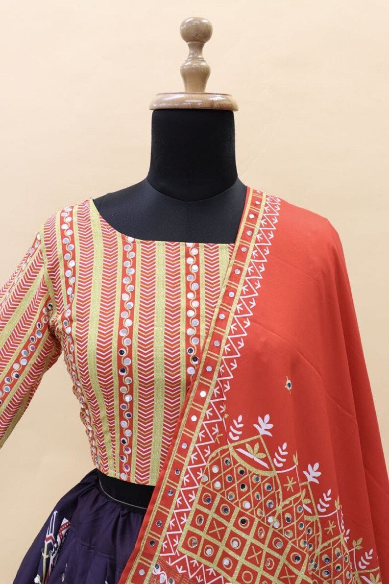 Choli Work :- Fancy Digital Print Work & Real Mirror Work