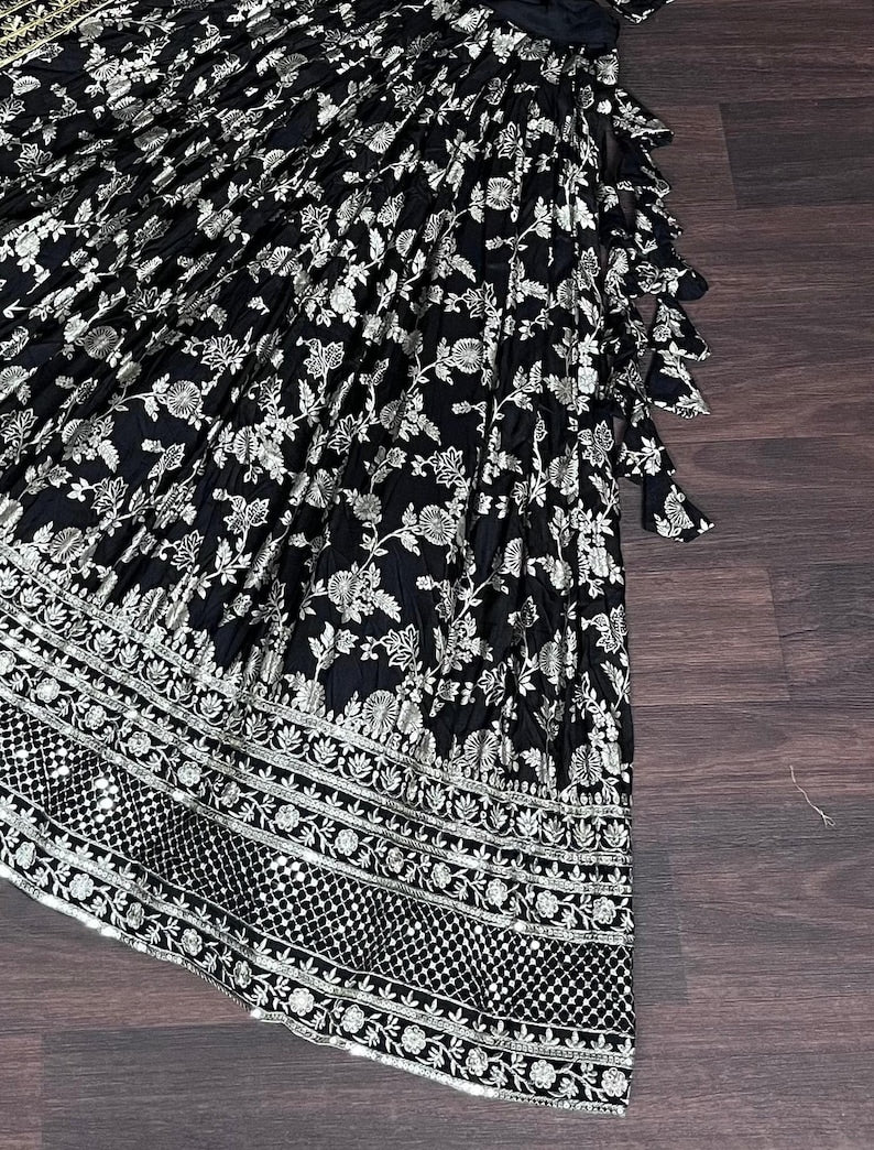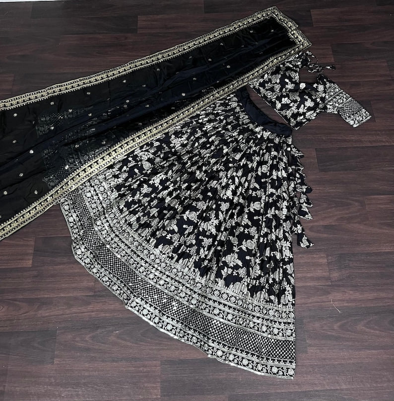 Name : Black Color Georgette And Thread With Sequnce Work Party Wear Collection Special Lehenga Choli Set