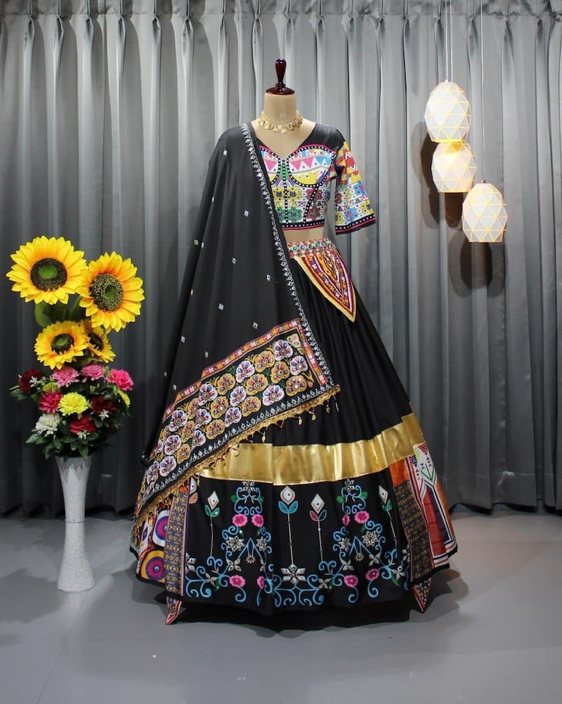 Black Color Heavy Flair Trendy Navratri Chaniya Choli