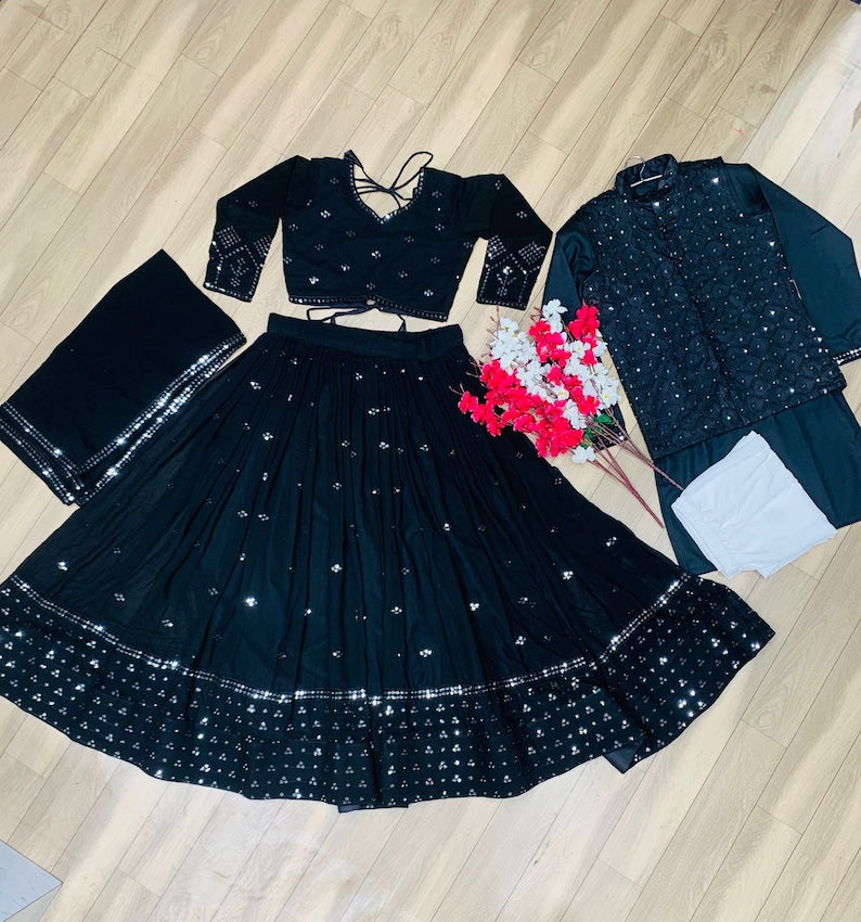 Black Georgette Heavy Thread Sequence Work Lehenga Choli