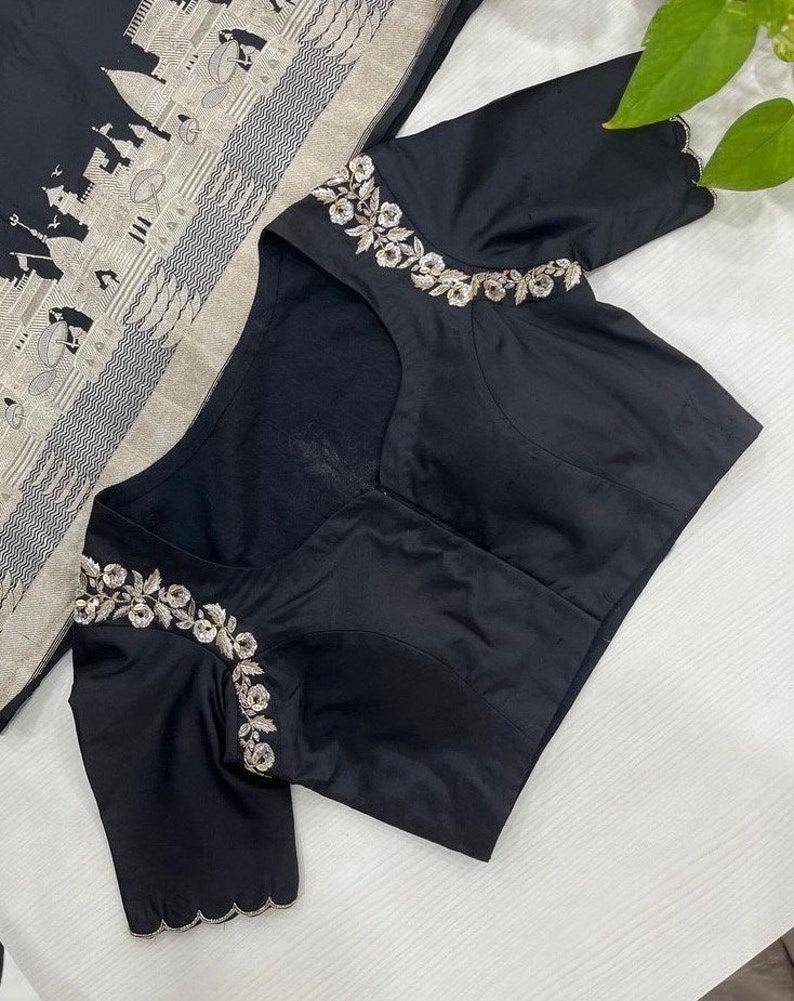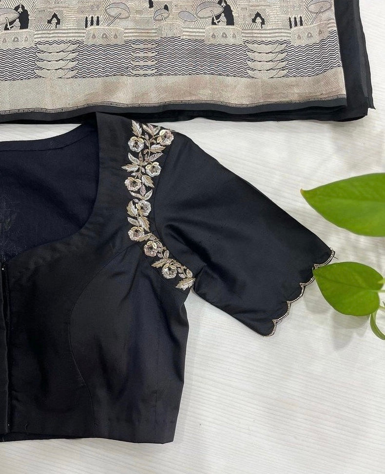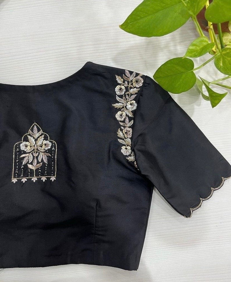 Neck : front round neck about 8 inch, back boat neck with motif embroidery