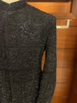 This sherwani is made richer by the carefully chosen black color scheme and various zari materials. This article, which was created especially for the groom on their wedding day, demonstrates our unwavering commitment to providing a premium product of the highest caliber in every way.