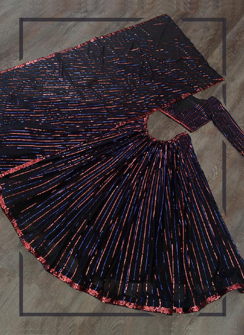 Black Multi Sequins Georgette Party Wear Lehenga Choli