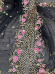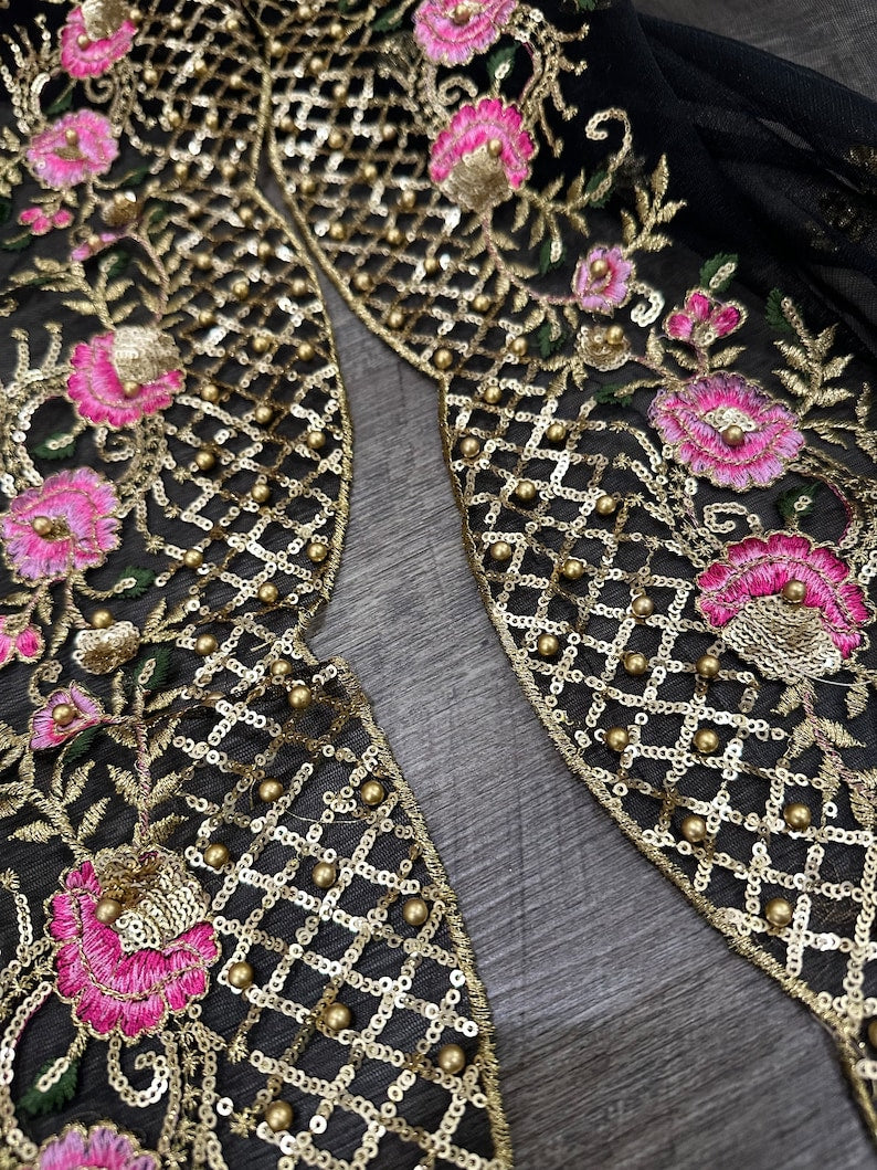Beautiful black net Dupatta with beads and sequins work on the scalloped edge.