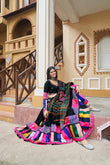 Black Ombre Glitter Sequins Lehenga Choli Set with Embroidered Net Dupatta