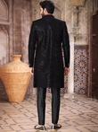 Black Sequins Embroidered Dupion Silk Jacket Style Men's Sherwani