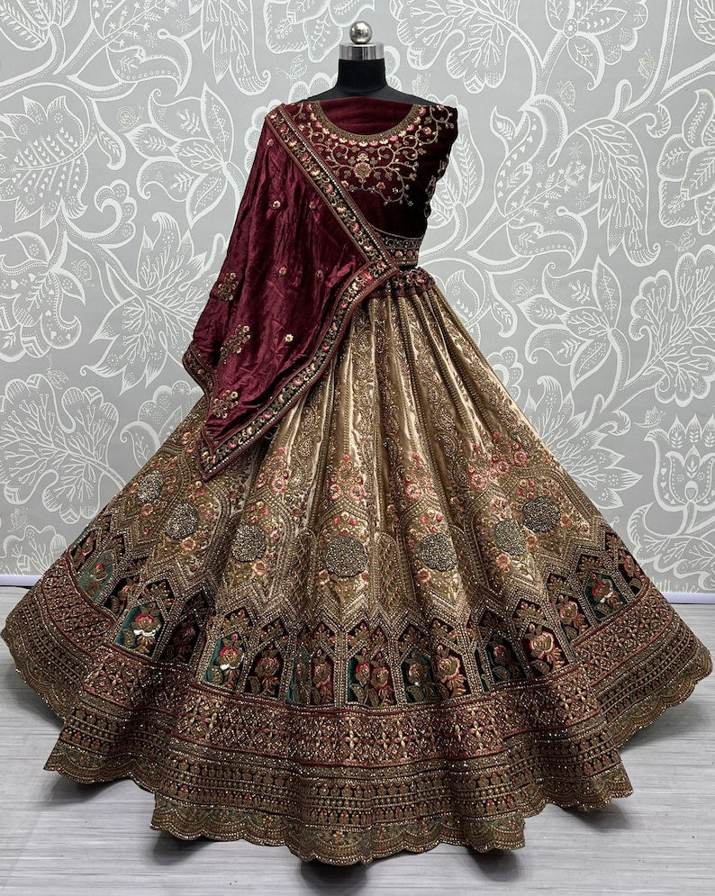 Bridal Lehenga Choli for Party and Reception With Multi Thread Work, Sequence Work, Dori Work, Zircon Diamond
