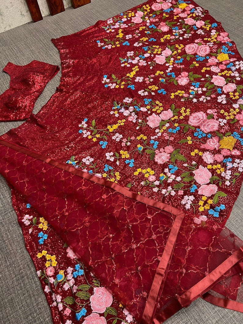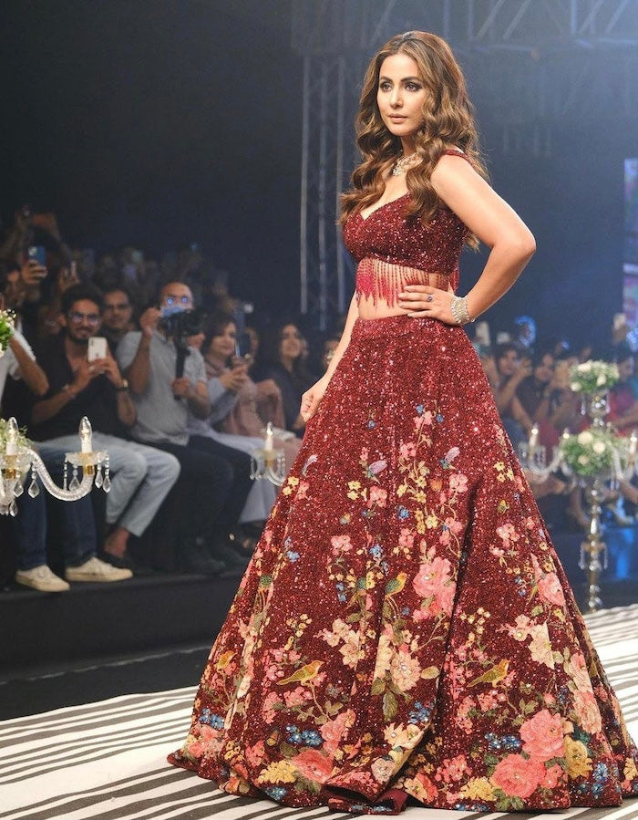 Buy Heena Khan Style Red Color Sequence Embroidery work Lehenga Choli