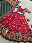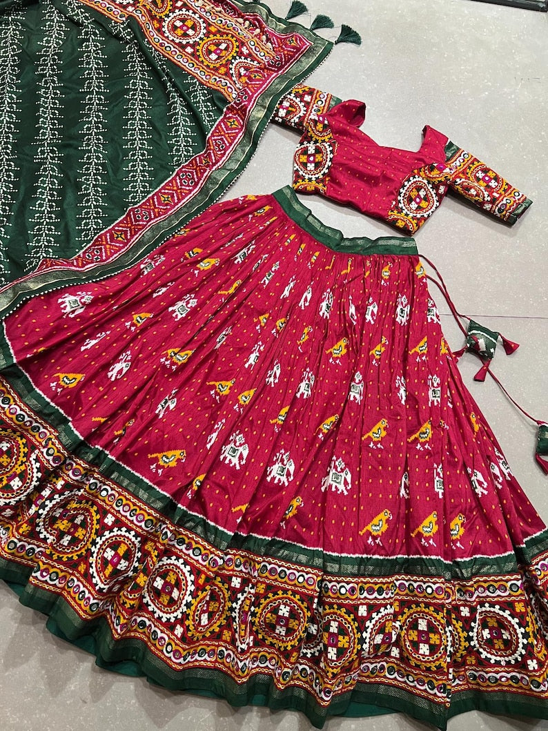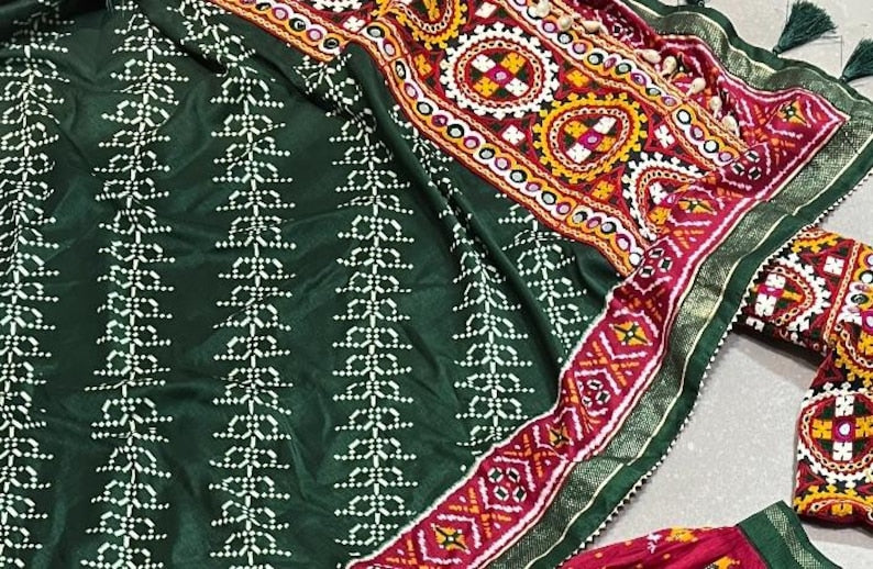 Charming Maroon & Green Bandhani Printed Silk Traditional Gown