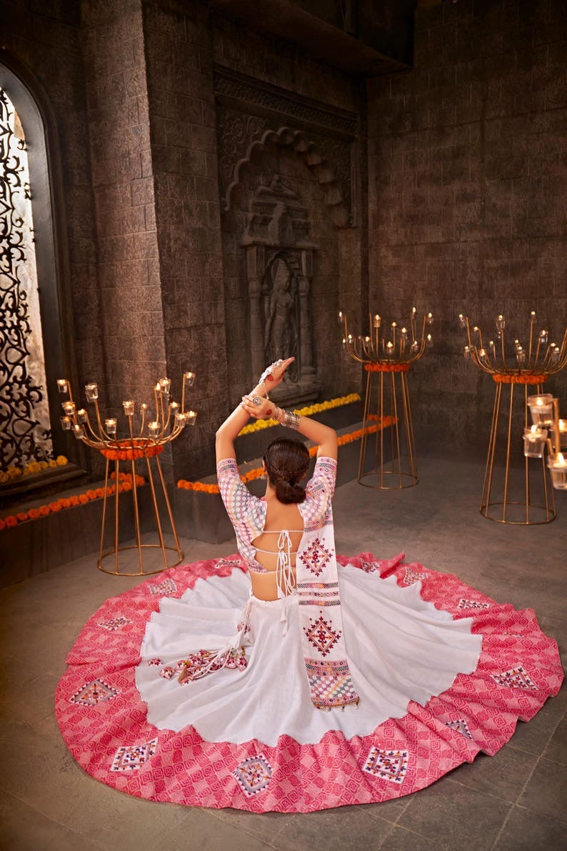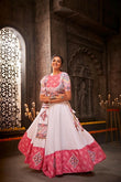 STYLE : Readymade Lehenga Choli FABRIC : Chiffon WORK : Multi Color Thread Work, Resham Work COLOUR : White, Pink OCCASION : Engagement, Wedding, Party
