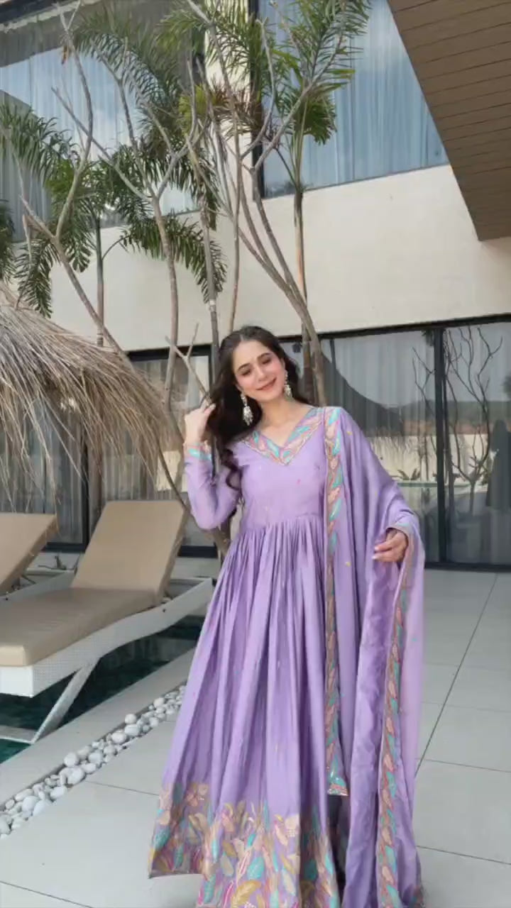 💗 *Chinnon Fabric gown with Sequins & Multi Thread Embroidered Work, It looks graceful for women, it Designed to flatter all body types, gowns for women combine the best parts of western and Indian wear into one stunning ensemble.* 💝