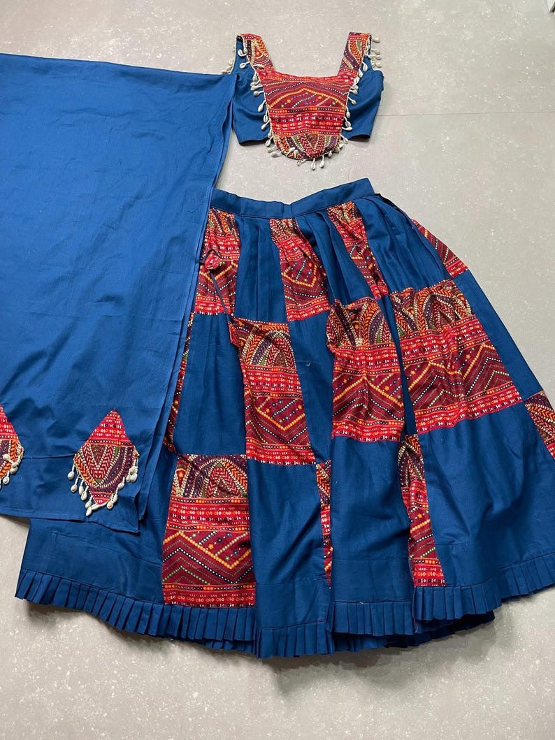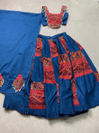 Chinnon Silk Blue Wedding Wear Mill Printed Lehenga Choli