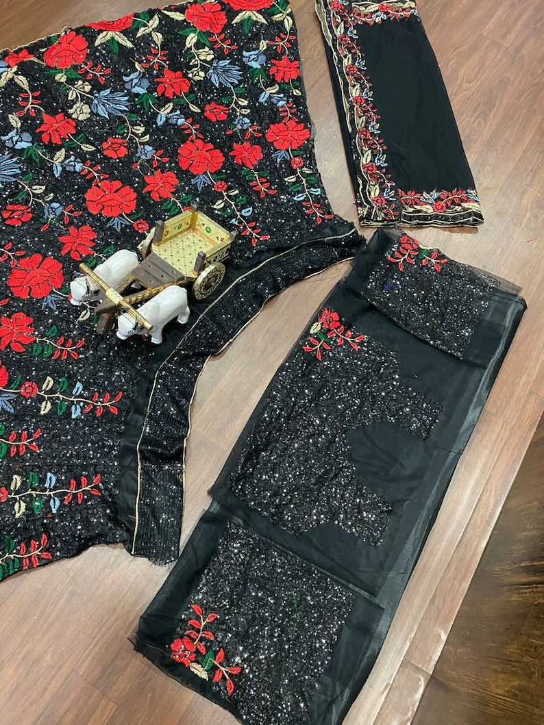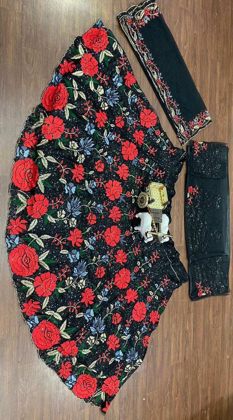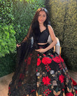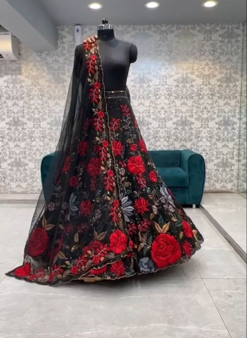 Classy Black & Red Color Floral Work Lehenga Choli With Dupatta