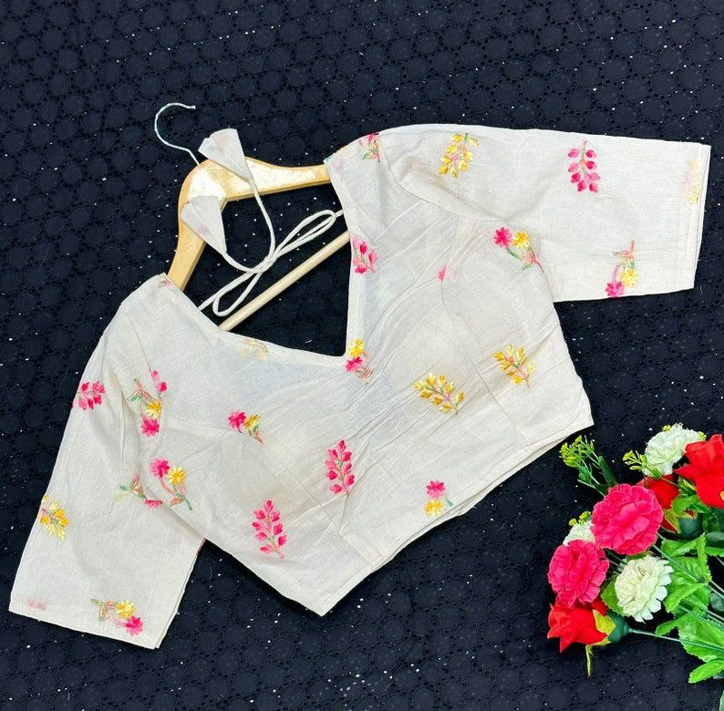 Cotton Dyeable Thread Blouse ( Mirror Mix )