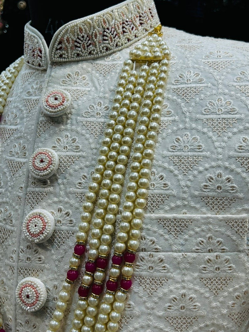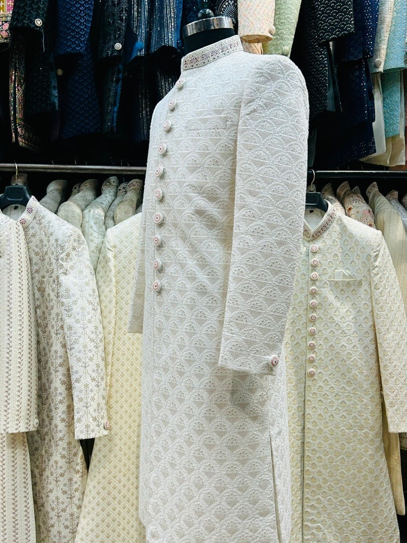 Cream Colored Silk Wedding Sherwani