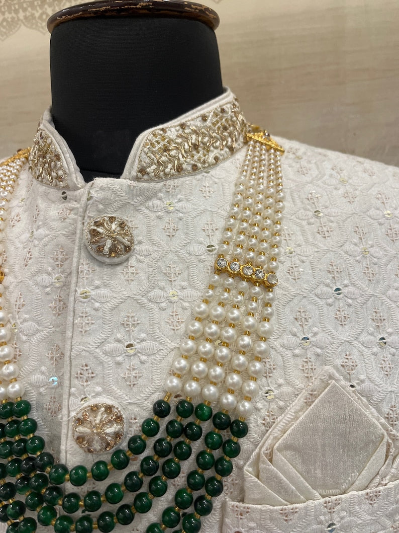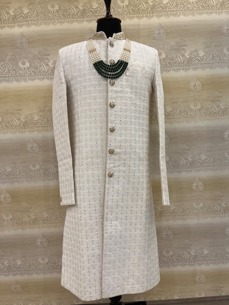 handcrafted designer Wedding sherwani for groom made from the finest fabric will make you fell like a king on the happiest & most important day of your life.
