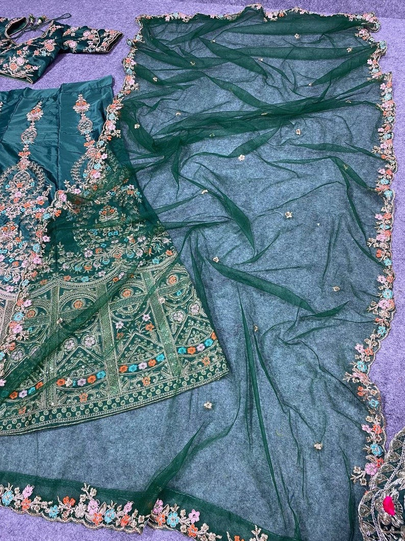 Material composition - Tafeta Satin Silk fabric in Lehenga & choliFinish type - Semi-stitchedPattern - EmbroideredCare instructions - Hand Wash OnlyDesign name - DesignerOccasion type - Wedding, Party, Ceremony, EthnicCountry of Origin - India