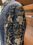 •The base fabric, which is crafted from opulent silk, sets the scene for a gorgeous floral embroidered print, resulting in an alluring visual appeal.