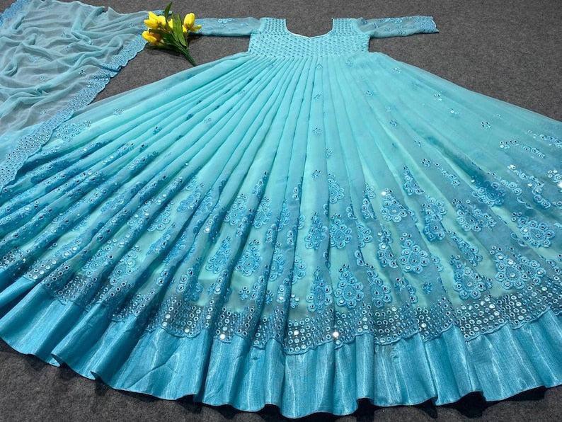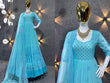 Embroidered Blue Ladies Bridal Georgette Long Gown, Party Wear